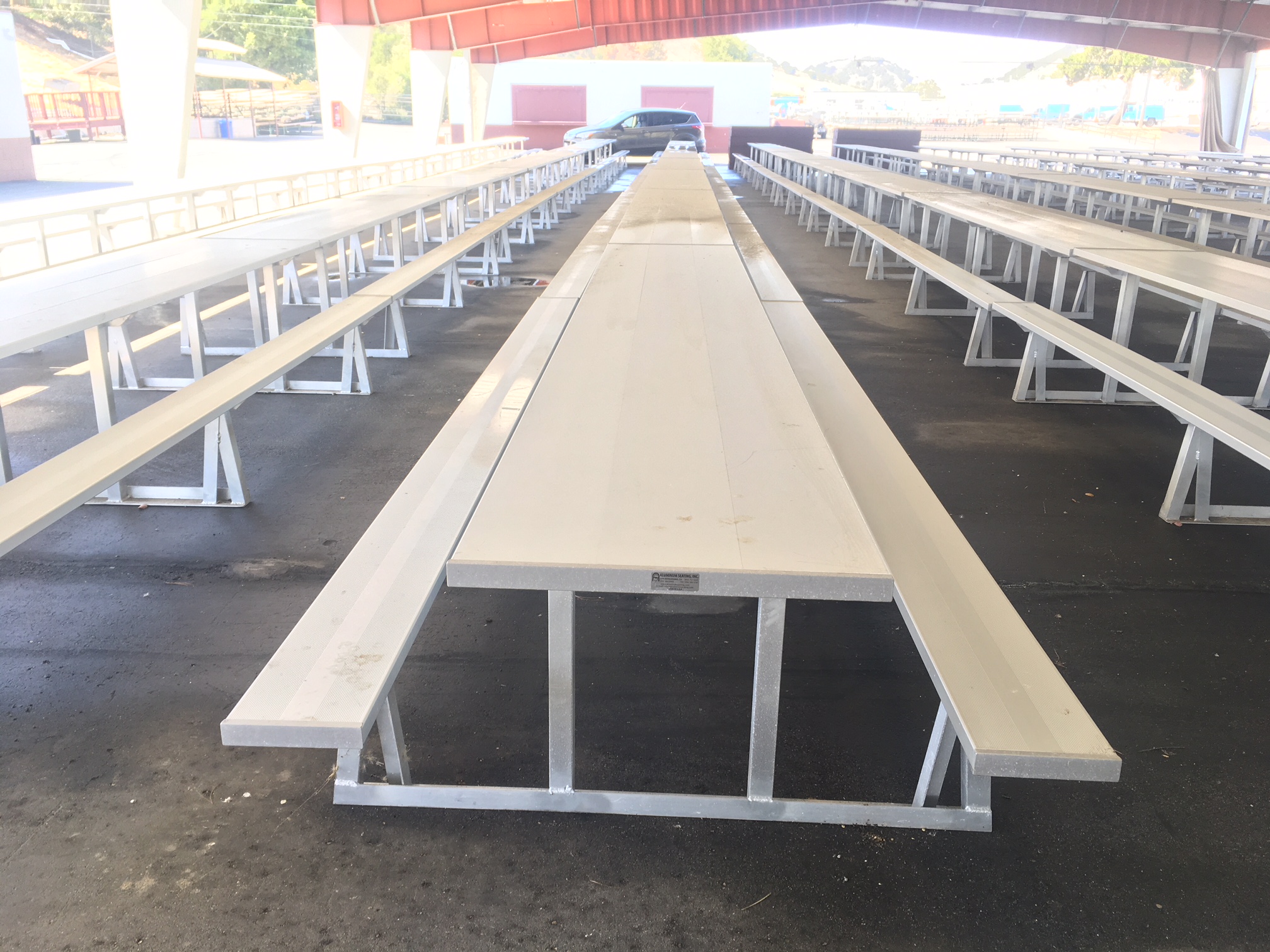 Our table frames are built with the same 6061 T6 2″x2″ square tube as our bleachers. The frames also feature 2″x2″ 3/16″ thick aluminum angle brace welded to the seat posts for heavy duty strength.