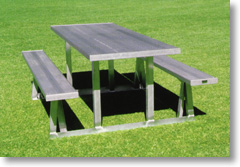 Whether it’s families gathering at the park for a birthday party or an event at your local school or church, we got you covered on seating capacity. Easily outlasts traditional wooden, fiberglass, and rubber coated or plastic top tables.We can manufacture tables from 6 FT (8 people) all the way to 30 (40 people).